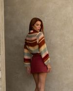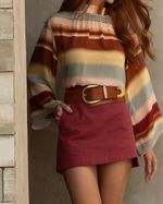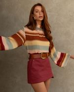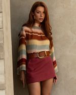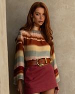 Blusa Listrada Degradê em Viscose. Modelo reto, mangas longas, gola dupla e fechamento com zíper atrás. Ideal para usar com short ou alfaiataria. Look Boho Chic.