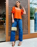 Calça Jeans. Modelo wide leg, cós alto, passantes, bolsos e fechamento em zíper. Ideal para usar com camisas ou blusas. Look Casual.