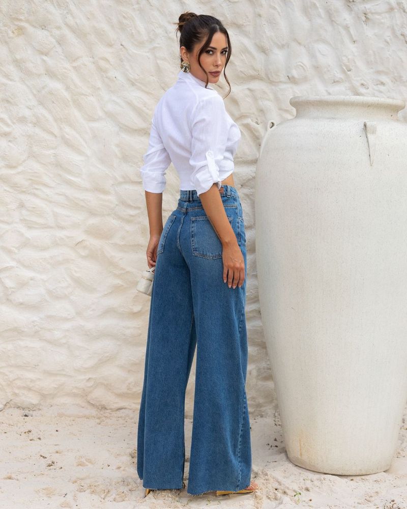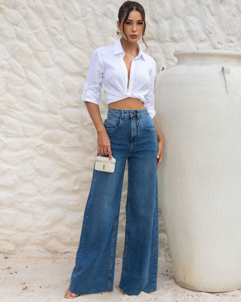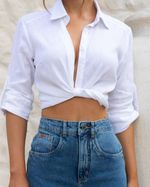 Camisa Branca em Linho. Modelo reta, mangas longas com martingale para regulagem, gola, patô e fechamento em botões frontais. Ideal para usar com calça de alfaiataria ou short-saia. Look Classic.