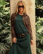 Camisa Estampa Onça em Algodão. Modelo em sarja, mangas longas, gola, bolsos, patô e fechamento em botões de presão. Ideal para usar com calça ou como sobreposição. Look Fashion Cool.