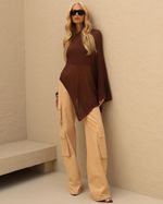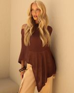 Sobreposição Marrom tipo Capa em Tricot. Modelo solto, assimétrico. Ideal para usar com calça e short. Look Fashion.
