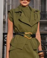 Colete Aviator em Poliester. Modelo em sarja, cavado, recortes frontal com fechamento em botão, gola com fechamento em faixa com fivela dourada e abertura laterais (Acompanha faixa pespontada para amarração). Ideal para usar com short ou calça de cós alto. Look Fashion Cool.