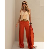 Regata Bege Sand em Poliéster. Modelo reta, alças finas com regulagem e recortes com babados embutidos frente e costas. Ideal para usar com short-saia ou calça de cós alto. Look Fresh.