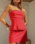 Short-Saia Vermelho em Algodão com Poliamida. Modelo reto, cós alto e fechamento em zíper. Ideal para usar com top ou camisa. Look Chic.