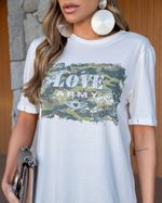 T-Shirt Off White em Algodão. Modelo reta, mangas curtas, decote redondo e estampa frontal. Ideal para usar com calça cargo ou short militar. Look Casual.