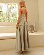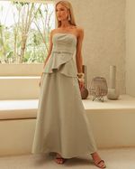 Top Verde Sage em Algodão. Modelo estruturado, cropped, tomara que caia, basque transpassado na barra, com abertura na barra costas e fechamento em zíper costas. (Acompanha cinto na mesma cor). Ideal para usar com short saia ou calça de cós alto. Look Chic.